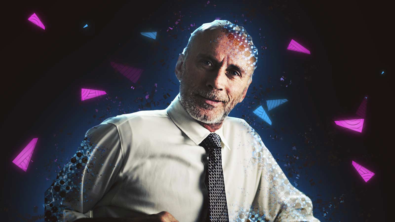 Confident businessman, digital transformation, data disruption